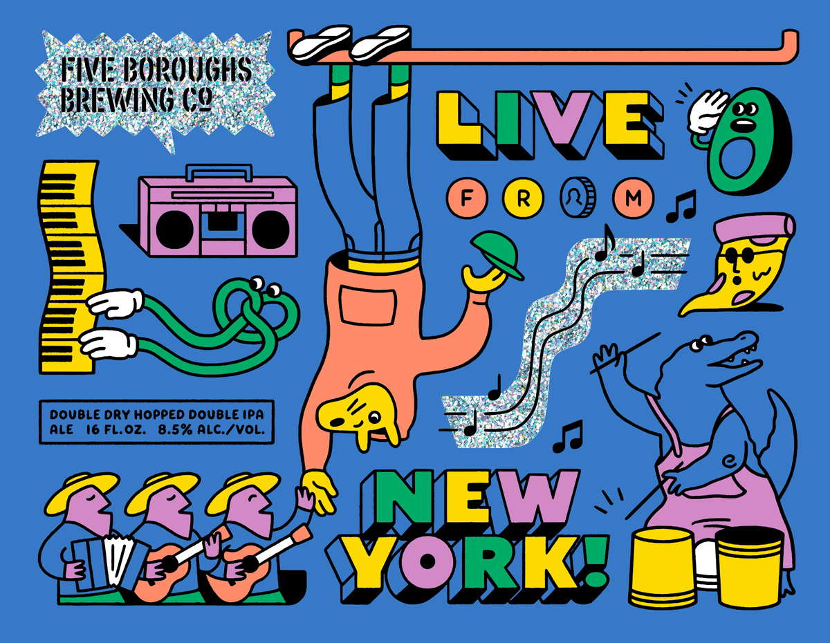 Creative direction, design, lettering, and illustration work for various Five Boroughs Brewing Co. labels Creative Direction: Blake Tomnitz Creative Direction & Design: Sean Sutherland