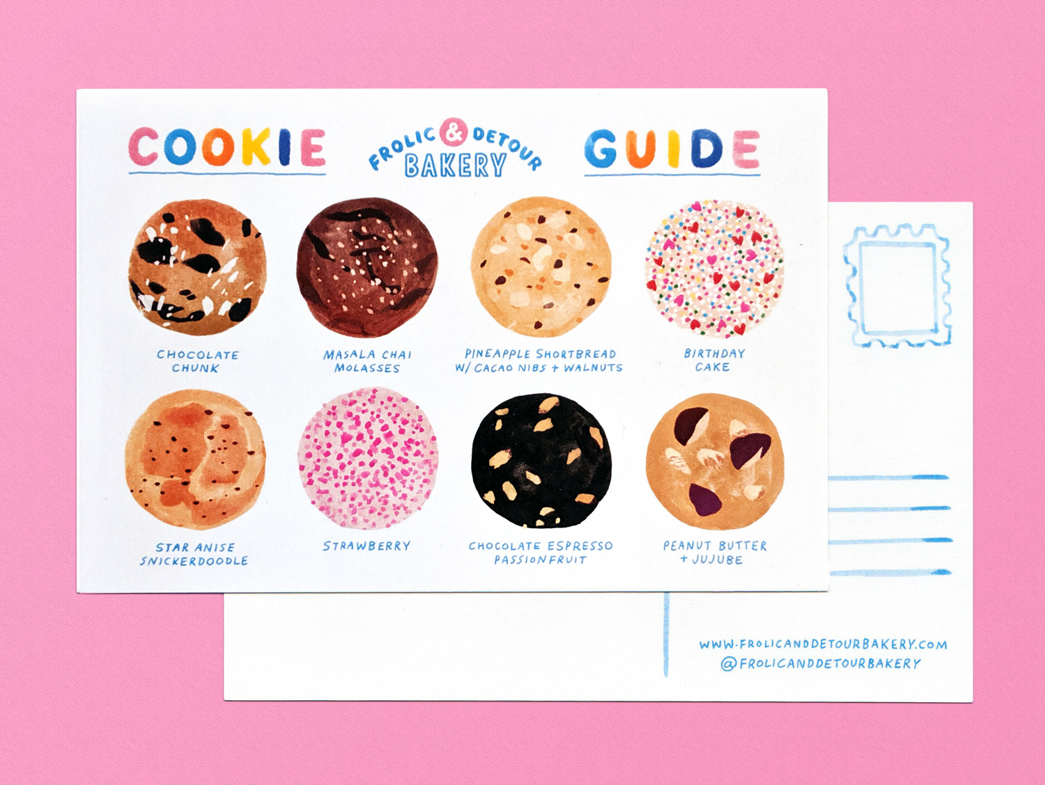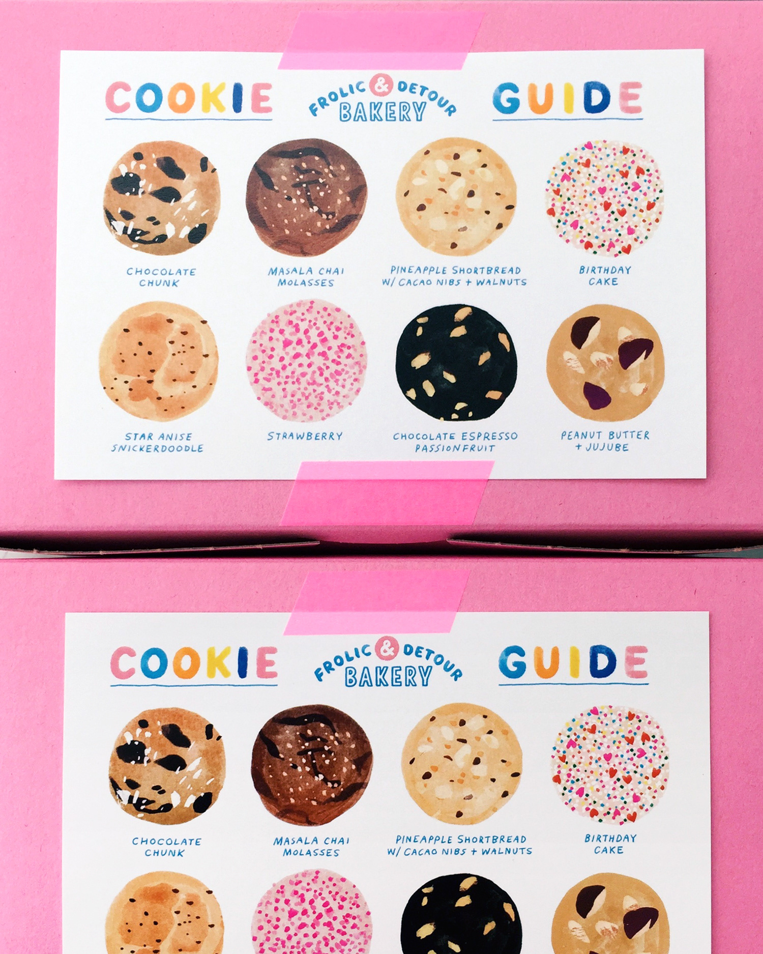 Full branding and packaging system with custom lettering and illustrations for Frolic & Detour Bakery in San Francisco
