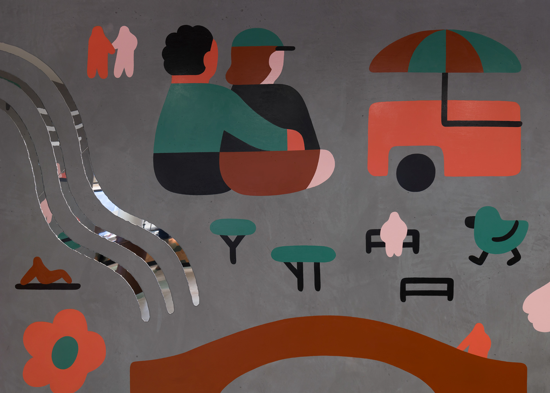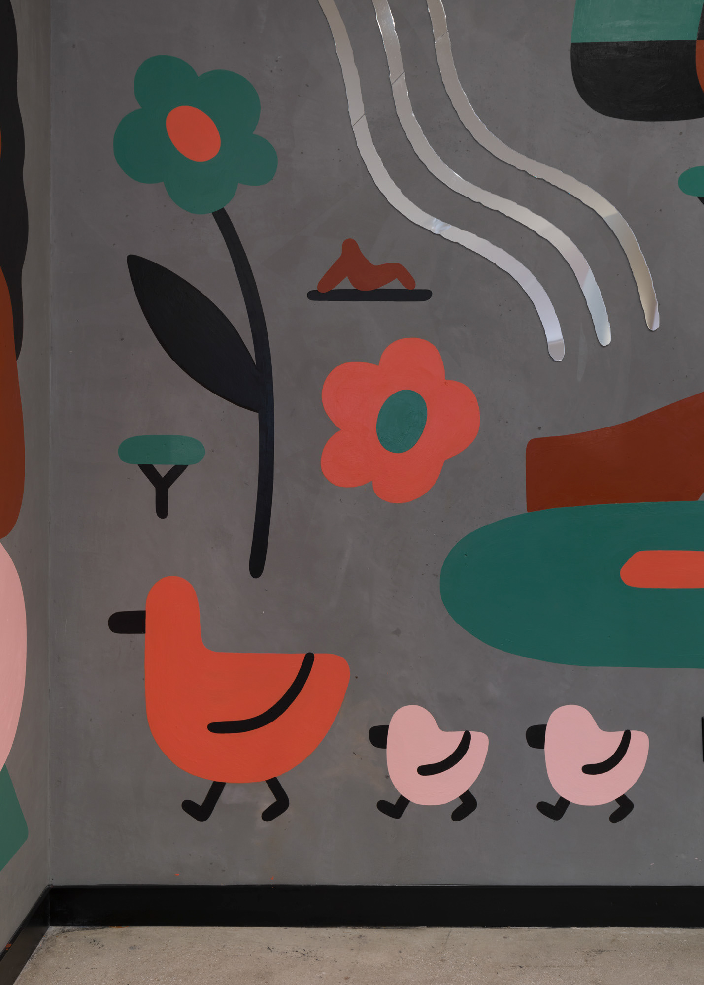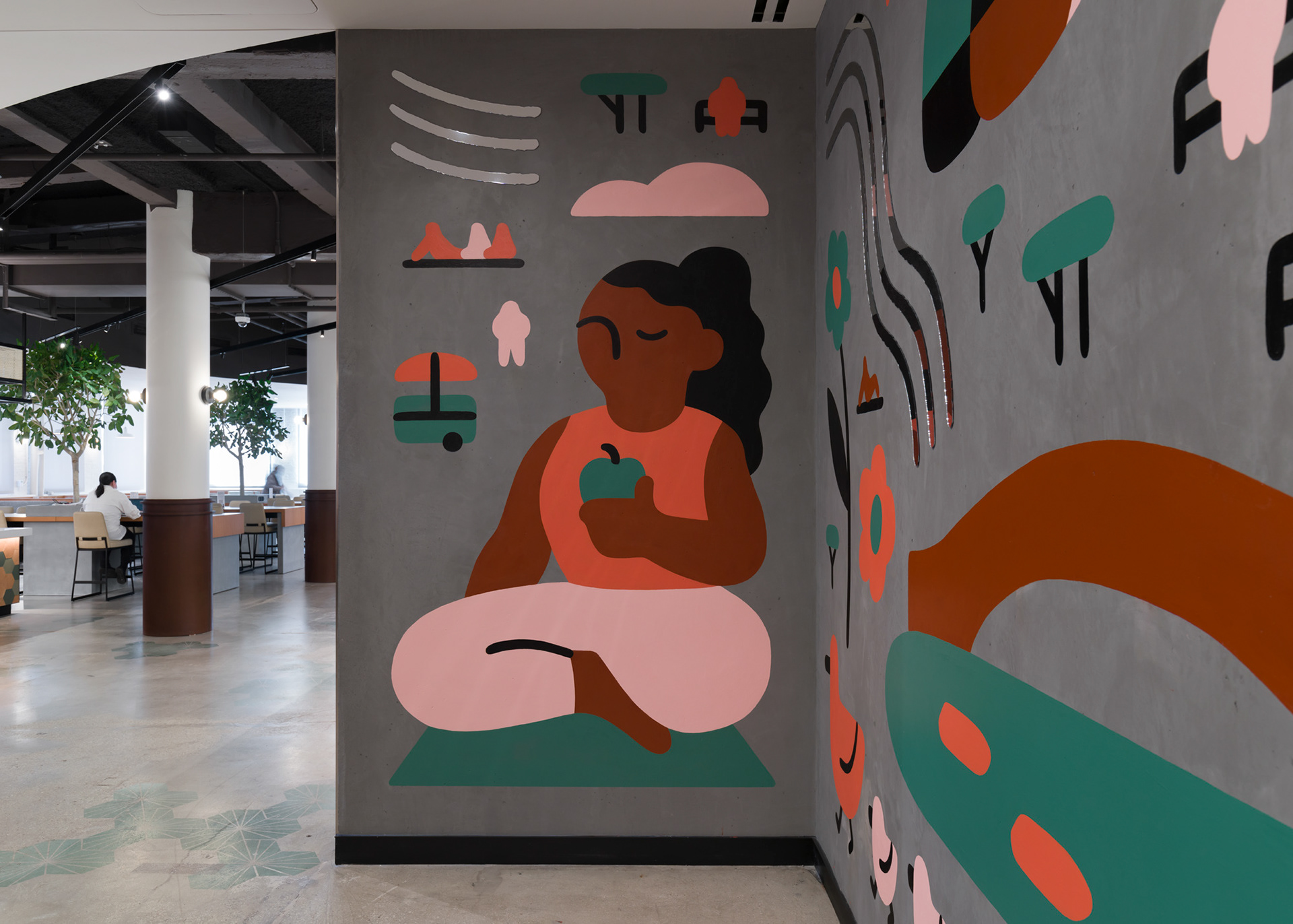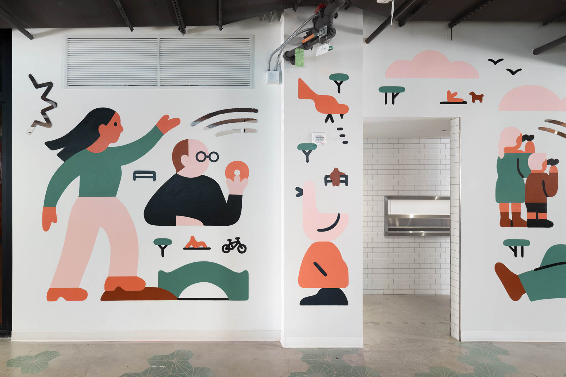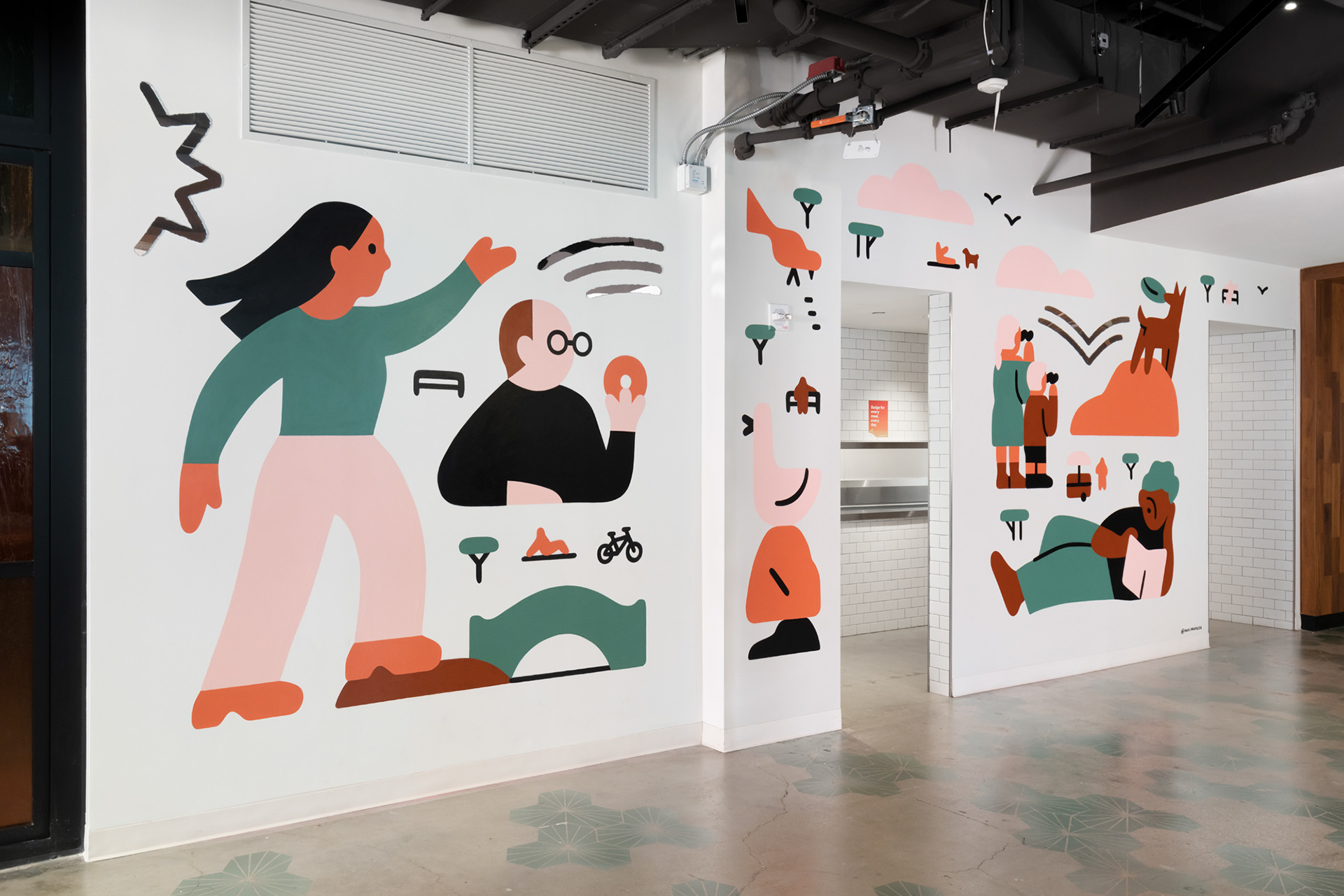 Two hand-painted mural designs installed in Google's New York Central Park-themed cafeteria Opportunity and Direction: Cameron Longyear Photography: Charles Benson Painting Assistance: Hasita Kamlesh