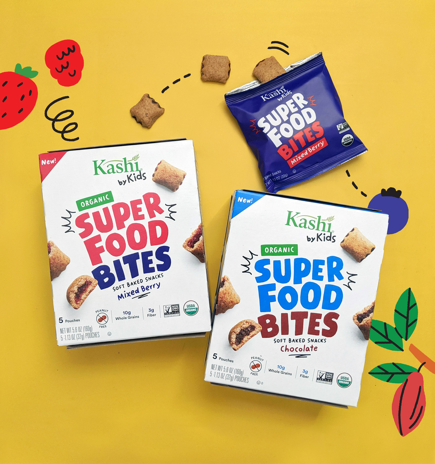 Continued lettering and illustrations for Kashi by Kids Super Food Bites