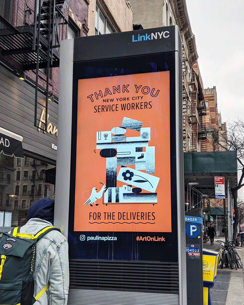I pitched and created a series of artwork dedicated to New York City service workers for LinkNYC's 1700+ kiosks throughout all five boroughs. Coincidentally it ran March 2020 as the pandemic hit...